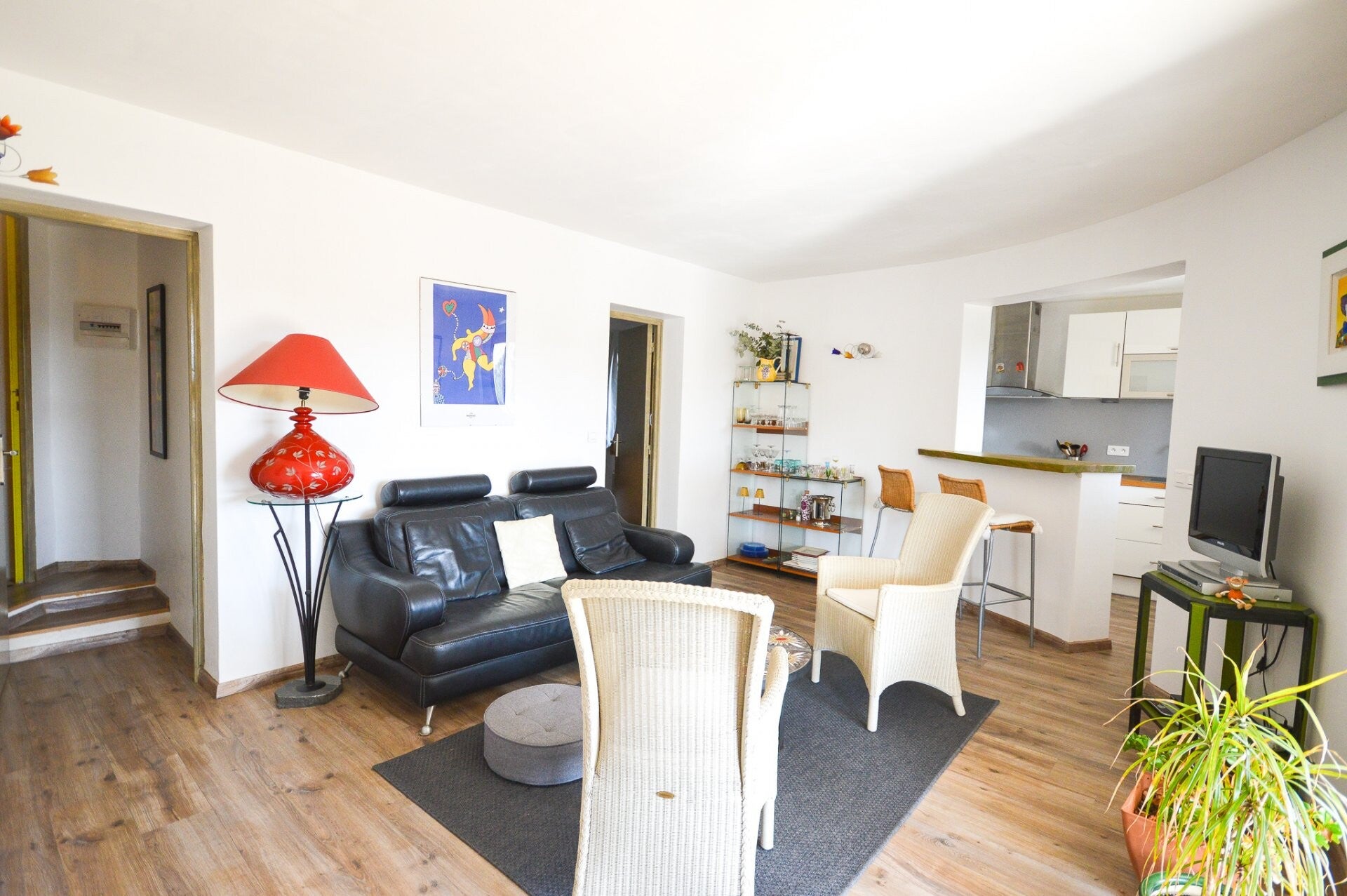 hoofdgedeelte te bereiken. Er is een woonkamer voorzien, een open keuken,